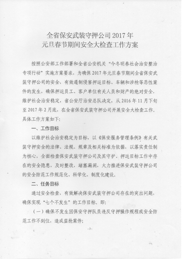 附:關(guān)于開展全省保安武裝守押公司2017年元旦春節(jié)期間安全大檢查工作的通知