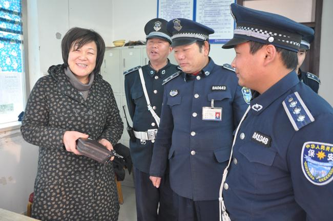 原來,12月28號晚,在越秀酒店執(zhí)勤的保安隊員文帥、呂明明向往常一樣巡邏執(zhí)勤,忽然發(fā)現(xiàn)一個皮包,“就餐的客人都走了,是不是有人落下的”想到這里,保安員文帥及時和大隊長張貝連聯(lián)系,并同執(zhí)勤單位保衛(wèi)部門取得聯(lián)系,經(jīng)過共同協(xié)商,大家打開皮包,找到了失主的聯(lián)系方式,并及時與失主取得聯(lián)系。接到保安隊員的電話,在家焦急萬分的失主毛先生長出了一口氣,對執(zhí)勤保安表達了自己的感激之情,并回憶說是自己不慎將皮包落下了,夜晚回到家后,才發(fā)現(xiàn)皮包不見了,由于夜色已經(jīng)太晚,毛先生請求保安員暫時保管皮包。第二天早上,毛生生的妻子來到越秀酒店保安值班室,向認真負責的保安隊員表達了感謝,并當眾檢查了皮包內的現(xiàn)金、銀行卡、身份證、票據(jù)等物品,當看到一切完好無損時,她向保安隊員表達了深深的感激之情,并向保安公司領導和保安大隊長表達了敬意和感謝!