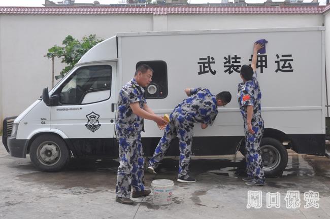 “稍息!立正!”清晨6時40分左右,在周口市保安服務(wù)公司院內(nèi),押運員們整裝待發(fā)。在隊員整齊的隊列前,大隊長按照押運一日工作流程部署安排隊員一天的工作。首先檢查押運員的一身裝備,防彈衣、防彈頭盔,隨后安排大家統(tǒng)一領(lǐng)槍、領(lǐng)子彈,驗槍,領(lǐng)錢款。在等待錢款的間隙,大隊長及時組織押運員們進(jìn)行持槍隊列和站姿訓(xùn)練訓(xùn)練。